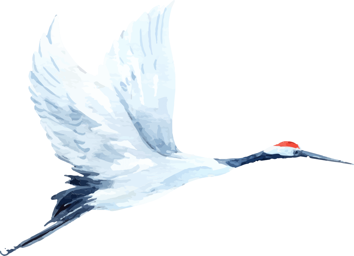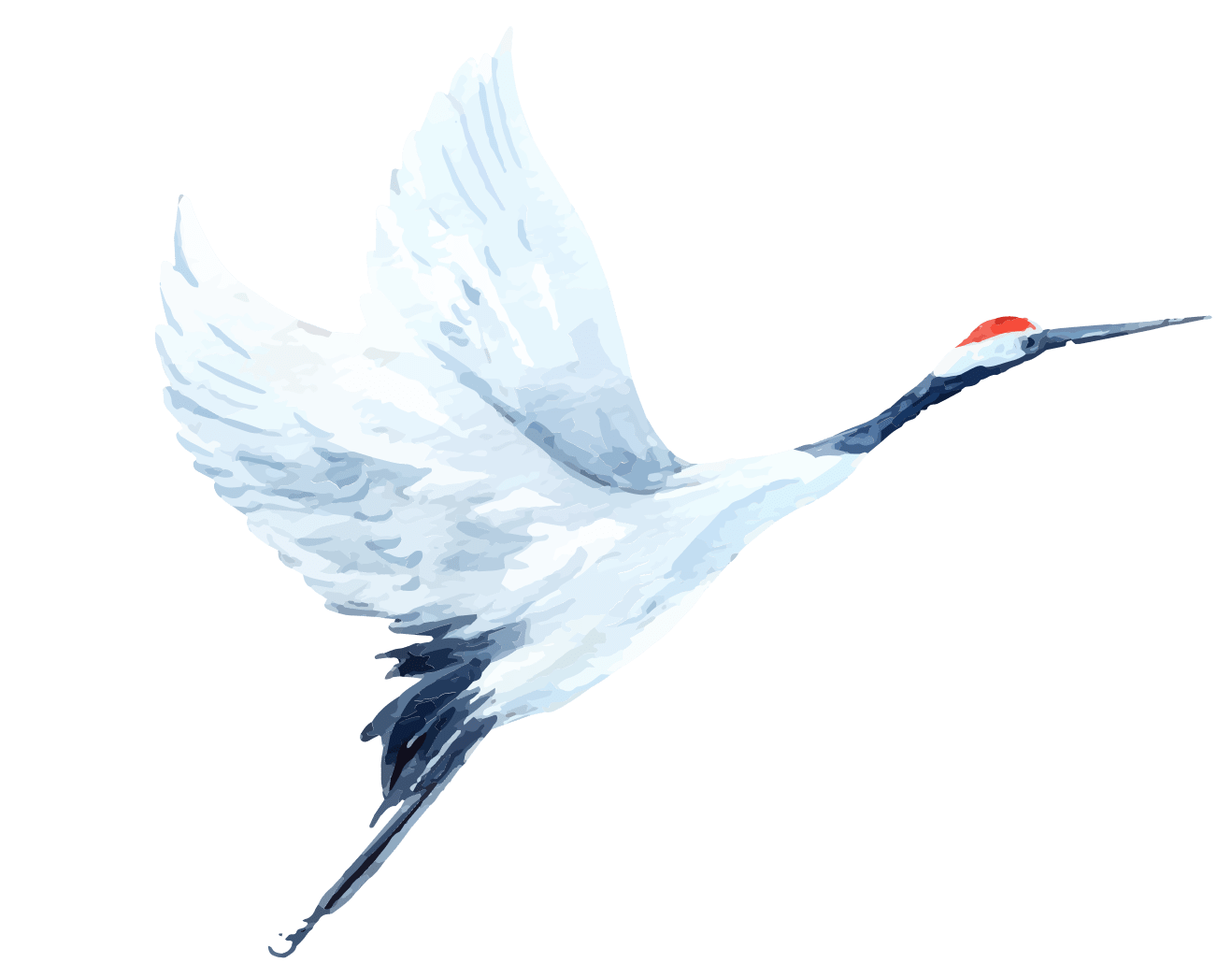 大きく羽ばたく丹頂鶴の翼をモチーフに、